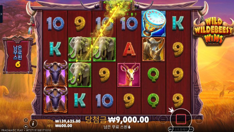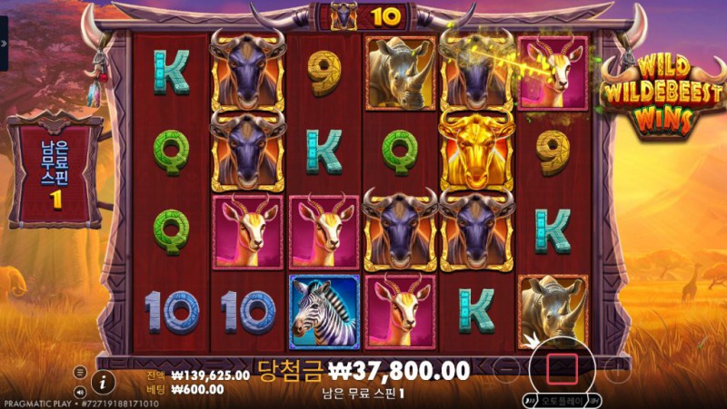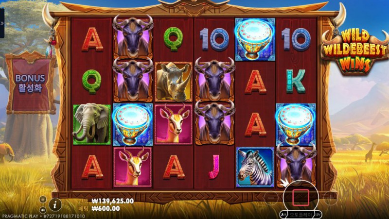 누(Wildebeest) 심볼은 와일드 역할을 수행합니다.