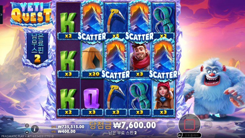 Pragmatic Play의 Yeti Quest 는 눈밭을 배경으로 한 밝고 유머러스한 비주얼, 빠른 진행과 보너스 확률로 눈에 띄는 슬롯입니다. 화면 오른쪽에 커다란 예티 캐릭터가 자리한 이 게임은 시각적으로 친근하면서도 귀여운 요소와 함께 활발한 사운드 디자인이 더해져 플레이어의 몰입감을 높입니다. 릴 구성과 심볼 배열은 전통적인 슬롯의 규칙을 따르면서도, Scatter 보너스와 연계된 무료 스핀 기능이 플레이의 긴장감과 기대감을 동시에 끌어올립니다. 특히 중저변동도에서 기대할 만한 빈도의 승리와 보너스 진입 기회를 제공해 초보자도 비교적 안정적으로 즐길 수 있습니다.