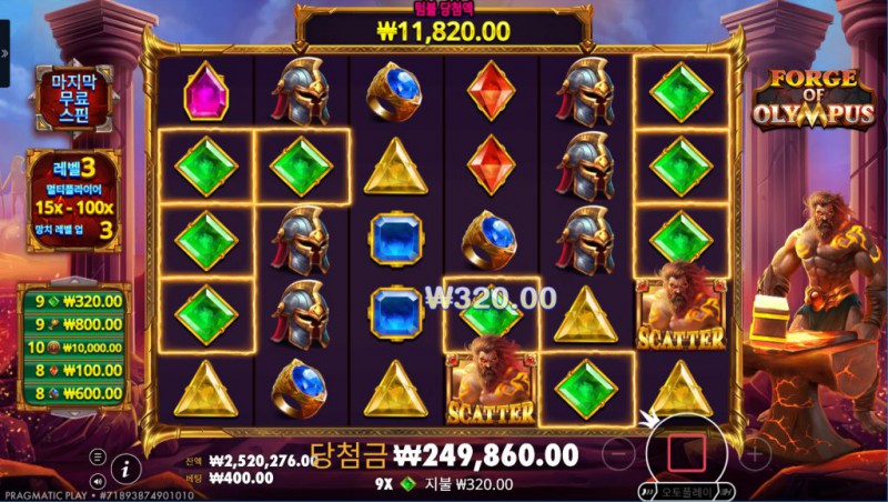 Forge of Olympus는 Pragmatic Play가 고변동성 슬롯에서 어떤 강점을 지니고 있는지를 잘 보여주는 작품입니다. 단순히 화려한 신을 전면에 내세우는 방식이 아니라, 세계관의 배경이 되는 ‘제작’과 ‘강화’라는 요소를 중심에 두어 서사적인 무게감을 확보했습니다. 무료 스핀에 진입했을 때 느껴지는 배수 상승과 연출의 변화는 이 게임의 진정한 매력을 드러내는 순간이며, 긴 침묵 끝에 찾아오는 보상은 강한 만족감을 제공합니다. 안정적인 소액 플레이보다는, 흐름을 읽고 보너스 구간을 노리는 전략적인 접근이 어울리는 슬롯입니다. 고배당 잠재력과 묵직한 연출, 그리고 신화적 분위기를 동시에 즐기고 싶다면 Forge of Olympus는 충분히 도전해볼 가치가 있는 선택지라 할 수 있습니다.