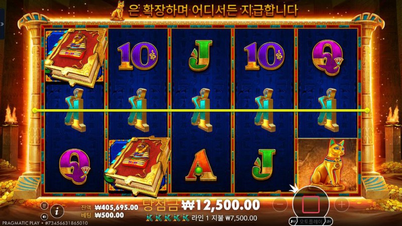프리 스핀 (Free Spins): 화면 어디에든 Book of Tut 심볼이 3개 이상 등장하면 10회의 프리 스핀이 트리거됩니다.