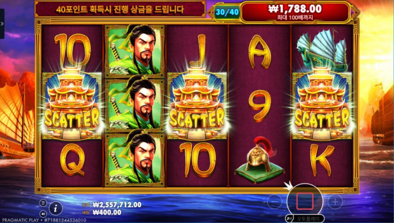 삼국지 테마를 잘 살린 전투형 슬롯 구조