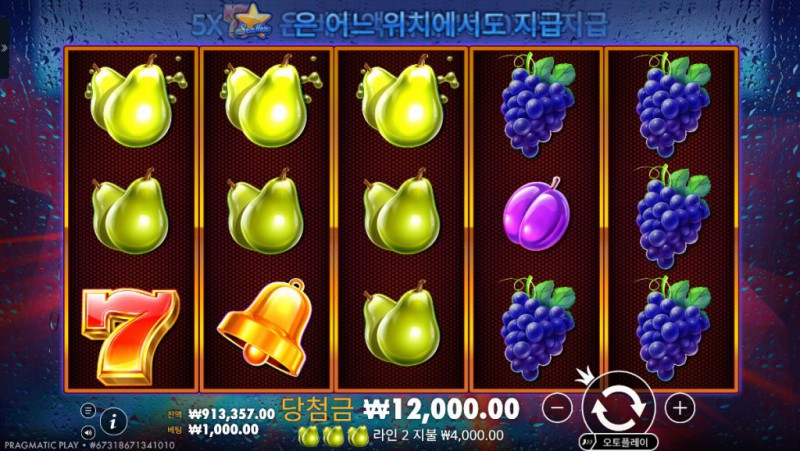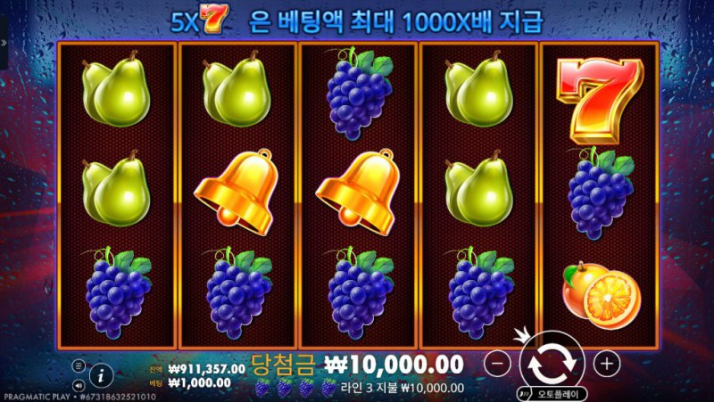 포도, 자두, 배, 오렌지: 각각 낮은 수준의 과일 심볼이지만, 조합에 따라 안정적인 소액 배당을 제공합니다.