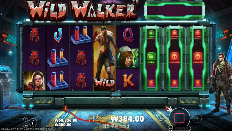 무료 스핀 시작 시 ‘Wild Walker’ 캐릭터가 고정 와일드로 등장합니다.