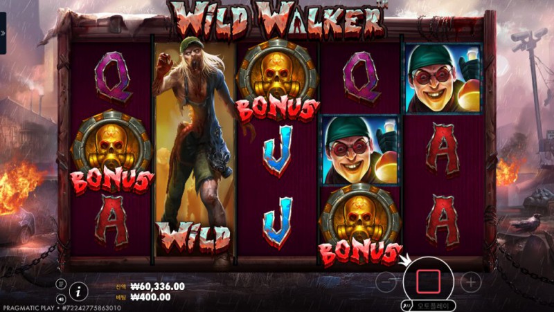 Wild Walker 는 Pragmatic Play가 다소 어두운 분위기의 포스트 아포칼립스 세계관을 바탕으로 선보인 슬롯 게임으로, 기존의 밝고 캐주얼한 슬롯과는 전혀 다른 결을 보여주는 작품입니다. 황폐해진 도시, 긴장감이 감도는 배경음, 그리고 좀비와 생존자 콘셉트의 캐릭터들이 등장하며 게임 시작과 동시에 묵직한 분위기를 형성합니다. 단순히 릴을 돌리는 슬롯이 아니라, 하나의 생존 서사 속으로 들어가는 듯한 인상을 주는 점이 Wild Walker의 가장 큰 특징입니다. 게임의 중심에는 ‘와일드 워커(Wild Walker)’라 불리는 핵심 캐릭터가 자리하고 있습니다. 이 캐릭터는 단순한 장식이 아니라, 실제 당첨 구조와 무료 스핀에서 중요한 역할을 수행합니다. 릴을 가로지르는 와일드 연출은 등장만으로도 긴장감을 높이며, 무료 스핀 구간에서는 안정적인 수익 흐름을 만들어내는 기반이 됩니다. 전체적인 연출은 과장되지 않지만, 어두운 색감과 묵직한 사운드가 결합되어 플레이어의 몰입도를 자연스럽게 끌어올립니다. Wild Walker는 빠른 속도의 연속 당첨보다는, 한 번의 기회를 길게 끌고 가는 구조에 가깝습니다. 초반에는 다소 조용한 흐름이 이어질 수 있지만, 무료 스핀에 진입한 이후에는 게임의 성격이 확연히 달라집니다. 이 대비가 분명하기 때문에 플레이 도중 지루함보다는 긴장과 기대가 유지되는 편이며, 모바일 환경에서도 화면 구성과 인터페이스가 단순해 부담 없이 즐길 수 있습니다.