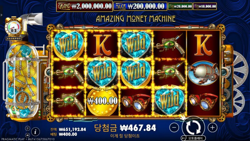 AMAZING MONEY MACHINE 은 Pragmatic Play가 선보인 독창적인 스팀펑크 테마의 슬롯으로, 클래식한 금속 톤과 정교한 기계 장치가 결합된 비주얼이 돋보입니다. 이 게임은 단순한 회전 이상의 재미를 제공하며, 각 스핀마다 예측 불가능한 ‘머니 기계’의 작동을 통해 새로운 기회를 창출합니다. 플레이어는 매 순간 리스핀, 잭팟, 그리고 즉시 현금 보상을 노릴 수 있으며, 모든 스핀이 긴장감과 기대감으로 가득합니다. 특히, 이 게임의 가장 큰 매력은 ‘The Amazing Money Machine’ 기능이 언제든 등장할 수 있다는 점입니다. 스핀 중 기계가 작동하면서 무작위 보상이나 잭팟이 추가로 등장할 수 있어, 일반 스핀조차 보너스처럼 느껴집니다. Pragmatic Play 특유의 고품질 그래픽과 사운드 연출이 어우러져, 마치 실제 스팀 엔진이 돌아가는 듯한 생동감을 전달합니다.