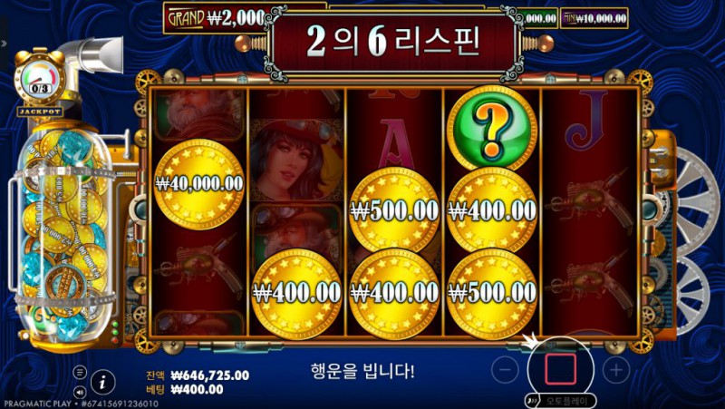 게임 내 오른쪽의 기계 장치가 작동하면서 리스핀, 보너스, 또는 잭팟의 단서를 제공합니다.