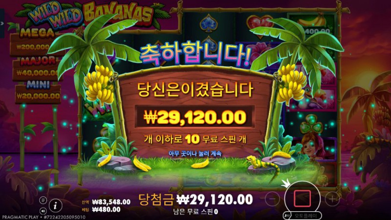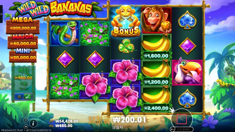 Wild Wild Bananas 는 Pragmatic Play가 선보인 정글 테마 슬롯으로, 밝고 경쾌한 분위기 속에 고배당 구조와 변동성 있는 보너스 시스템을 결합한 작품입니다. 게임을 실행하는 순간, 열대 섬과 정글을 배경으로 한 화려한 색감과 활기찬 사운드가 플레이어를 자연스럽게 게임 세계로 끌어들입니다. 바나나, 원숭이, 앵무새 같은 친숙한 심볼들은 직관적이면서도 시각적인 만족도를 높여주며, 슬롯 초보자부터 경험 많은 유저까지 부담 없이 접근할 수 있는 인상을 줍니다. Wild Wild Bananas의 가장 큰 특징은 단순한 구조 속에서도 강한 한 방을 노릴 수 있다는 점입니다. 릴 구성과 규칙 자체는 비교적 이해하기 쉬운 편이지만, 와일드 심볼과 멀티플라이어, 보너스 기능이 맞물리면서 한 번의 스핀으로도 큰 배당이 터질 수 있는 가능성을 만들어냅니다. 특히 연속 당첨이나 보너스 진입 시 연출되는 애니메이션은 긴장감을 효과적으로 끌어올리며, 플레이 흐름에 몰입감을 더해줍니다. 전반적으로 빠른 템포의 플레이와 시원한 연출을 선호하는 유저에게 잘 어울리는 슬롯입니다. 장시간 플레이보다는 짧은 시간 안에 승부를 보고 싶은 플레이어에게 적합하며, Pragmatic Play 특유의 안정적인 UI와 모바일 최적화 덕분에 언제 어디서든 쾌적하게 즐길 수 있다는 점도 장점으로 꼽을 수 있습니다.