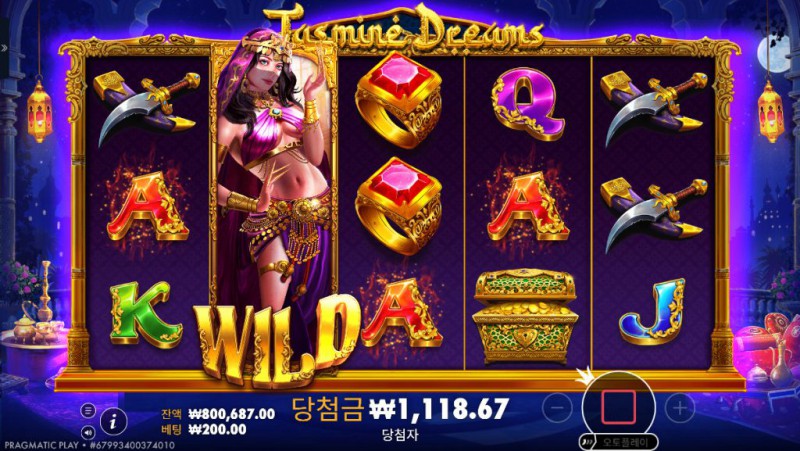 와일드(Wild): 게임의 주인공인 자스민 심볼이 와일드로 등장하며, 다른 심볼을 대체하여 승리 조합을 완성합니다.