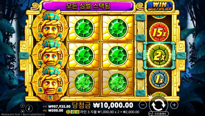 AZTEC GEMS 는 Pragmatic Play의 대표적인 클래식 슬롯으로, 단순한 구조 속에 숨겨진 강렬한 배당 잠재력으로 많은 플레이어에게 사랑받는 작품입니다. 게임의 전반적인 분위기는 신비로운 아즈텍 문명을 배경으로 하고 있으며, 정글의 고요함 속에서 금빛 보석과 신비로운 조각상이 반짝이는 장면은 마치 고대 유적 속 숨겨진 보물을 탐험하는 듯한 긴장감을 자아냅니다. 이 슬롯은 3×3 릴 구조를 기반으로 하며, 마지막 네 번째 릴이 **승수 멀티플라이어(Multiplier Reel)**로 작동하는 독특한 시스템을 채택하고 있습니다. 즉, 세 개의 릴에서 조합이 완성되면, 네 번째 릴의 승수가 최종 배당에 적용되어 훨씬 큰 보상을 받을 수 있습니다. 이러한 단순하면서도 강력한 구조 덕분에, 짧은 시간에 빠른 템포로 게임을 즐기고 싶은 플레이어에게 특히 매력적입니다.