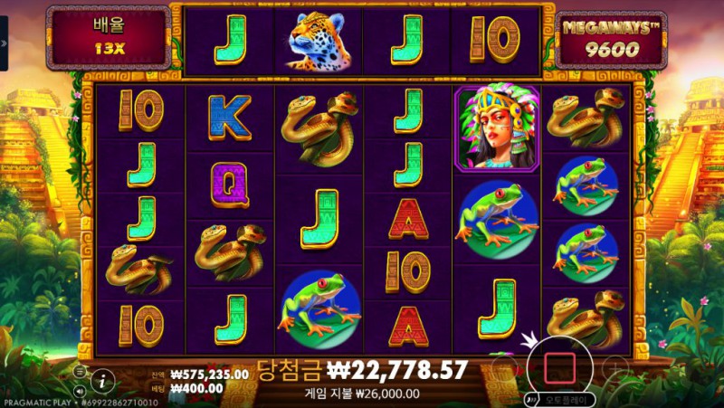 AZTEC KING MEGAWAYS는 매 스핀마다 릴의 행 수가 바뀌는 가변 릴 구조를 채택했습니다.