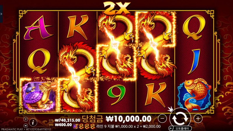 심볼 구성: 전형적인 카드심볼(저배당)과 드래곤·보석·황금 심볼(고배당)로 구성됩니다.