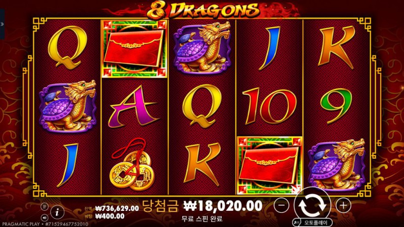 붉은 비단과 금빛 용문양이 뒤얽힌 화면이 천천히 밝혀질 때, 8 Dragons 는 동양의 상징성과 고전 슬롯의 직관성을 결합한 매혹적인 첫인상을 남깁니다. 화면 중앙에 자리한 여덟 마리 용의 형상은 단지 장식이 아니라 게임의 보너스 구조와 연결된 중요한 힌트처럼 보이며, 황금 테두리 속의 카드 텍스처와 빛나는 효과음은 매 스핀이 하나의 의식처럼 느껴지게 합니다. 특히 보너스 옵션 화면에서 제시되는 무료 스핀 선택지는 플레이어에게 단순한 ‘추가 회전’ 이상의 전략적 결정을 요구합니다 — 적은 회전수이지만 높은 승수를 노리는 공격적 선택, 혹은 회전수를 늘려 안정적 기회를 확보하는 보수적 선택 사이에서 플레이어는 자신만의 리스크 관리와 기대값 계산을 적용하게 됩니다. 스택형 와일드( STACKED WILDS )와 다양한 무료 스핀 승수 옵션이 결합될 때, 화면의 연출은 화려한 폭발로 이어지고 그 순간 플레이어는 운과 전략이 한데 어우러져 보상이 터지는 극적 장면을 경험하게 됩니다.