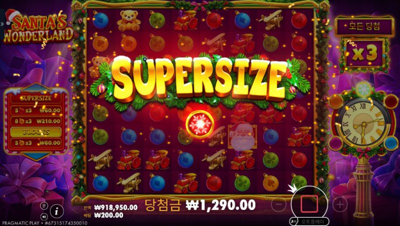 Pragmatic Play의 SANTAS WONDERLAND 는 크리스마스 시즌에 가장 잘 어울리는 슬롯으로, 단순한 테마 슬롯을 넘어 화려한 변형 기능과 프로그레시브 구조로 긴장감 넘치는 플레이를 선사합니다. 기본 게임에서도 다채로운 기능이 발동되며, Midnight Riches 단계로 진입할수록 대형 배당의 가능성은 더욱 커집니다. 변동성이 높아 도전적인 성향의 플레이어에게 적합하며, 화려한 그래픽과 음악은 몰입도를 극대화합니다. 크리스마스의 따뜻한 분위기와 대박의 짜릿함을 동시에 느끼고 싶다면 SANTAS WONDERLAND는 훌륭한 선택이 될 것입니다.