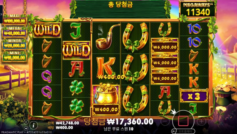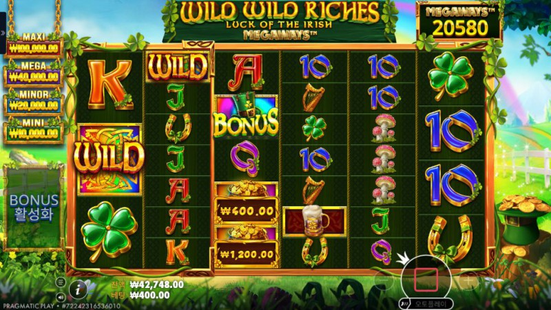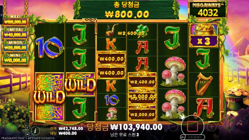 Wild Wild Riches Megaways 는 Pragmatic Play의 대표적인 아일랜드 테마 슬롯 시리즈에 Megaways 시스템을 결합한 작품으로, 전통적인 행운의 상징과 현대적인 변동성 구조를 동시에 즐길 수 있는 슬롯 게임입니다. 기존 Wild Wild Riches 시리즈가 비교적 직관적인 페이라인과 안정적인 흐름을 강조했다면, 이 Megaways 버전은 매 스핀마다 달라지는 릴 구성과 경우의 수를 통해 훨씬 역동적인 플레이 경험을 제공합니다. 게임을 처음 실행하면 선명한 녹색 배경과 금빛 장식, 클로버와 맥주잔, 하프 등의 상징적인 심볼이 자연스럽게 시선을 끕니다. 테마 자체는 익숙하지만, 릴이 회전할 때마다 심볼 개수가 바뀌는 Megaways 구조 덕분에 매 스핀이 새롭게 느껴집니다. 이로 인해 플레이어는 단순히 결과를 기다리는 것이 아니라, 매 회전마다 가능한 조합과 확장 가능성에 집중하게 됩니다. 기본 구간에서도 충분한 긴장감을 제공하지만, 진짜 매력은 무료 스핀과 보너스 구간에서 드러납니다. 연속 당첨과 멀티플라이어 누적 구조는 한 번의 흐름이 큰 수익으로 이어질 수 있는 가능성을 만들어 주며, Megaways 특유의 폭발력은 장기 플레이보다는 결정적인 순간을 노리는 플레이 스타일과도 잘 어울립니다. 모바일 환경에서도 릴과 심볼이 깔끔하게 정리되어 있어, 복잡한 구조임에도 불구하고 플레이에 혼란이 적다는 점 역시 인상적입니다.