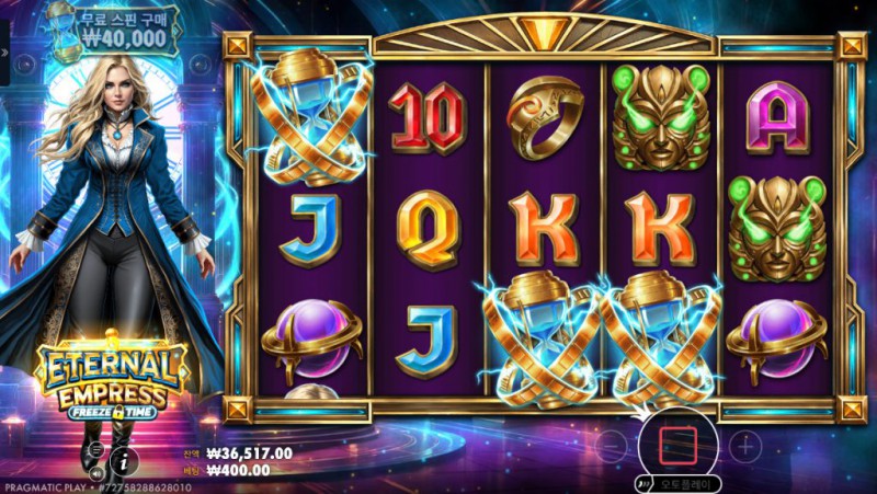 Eternal Empress – Freeze Time 은 시간과 마법을 테마로 한 Pragmatic Play의 감각적인 슬롯으로, 기존 슬롯에서 쉽게 보기 어려운 ‘시간 정지’ 콘셉트를 중심으로 전개된다. 화면 전반에는 고급스러운 판타지 분위기가 흐르고, 주인공인 Eternal Empress는 차분하면서도 강렬한 존재감으로 게임의 중심을 잡아준다. 단순히 릴을 돌리고 당첨을 기다리는 구조가 아니라, 스핀 하나하나가 시간의 흐름과 연결된 듯한 연출을 제공해 플레이 몰입도를 높인다. 특히 프리즈 타임 기능이 발동되는 순간에는 게임 전체가 잠시 멈춘 듯한 긴장감이 형성되며, 이 정적 속에서 배당 기대감이 극대화된다. 모바일 환경에서도 그래픽 손실 없이 선명하게 구현되며, 터치 반응 또한 매끄러워 장시간 플레이에도 부담이 적다. Eternal Empress – Freeze Time은 연출과 시스템의 균형이 잘 맞아떨어진 슬롯으로, 차분하지만 깊이 있는 플레이를 원하는 유저에게 인상적인 경험을 제공한다.