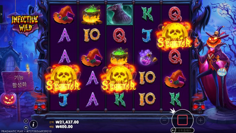 Pragmatic Play의 Infective Wild 는 다크 판타지와 호러 분위기를 결합한 슬롯 게임으로, 기존의 화려한 보너스 위주 슬롯과는 전혀 다른 방향성을 보여준다. 게임을 처음 실행하는 순간부터 음산한 배경과 보랏빛 릴, 그리고 음흉한 미소를 띤 마녀 캐릭터가 강한 인상을 남긴다. 이 슬롯의 핵심은 ‘감염’이라는 콘셉트로, 릴 위에 등장하는 와일드 심볼이 점차 주변 심볼을 감염시키며 확장되는 구조에 있다. Infective Wild는 단순히 한 번의 스핀으로 결과가 결정되는 슬롯이 아니라, 스핀을 거듭할수록 판이 변화하고 긴장감이 쌓이는 타입이다. 와일드가 등장한 위치를 중심으로 릴의 흐름이 달라지고, 언제 감염 와일드가 폭발적으로 확장될지 예측하기 어렵다. 이 불확실성이야말로 본 게임의 가장 큰 매력으로, 플레이어에게 지속적인 몰입감을 제공한다. 특히 고배당을 노리는 구간에서는 릴 하나하나가 의미를 갖게 되며, 한 번의 확장 와일드가 게임 흐름 전체를 바꿔놓는 장면도 자주 연출된다.