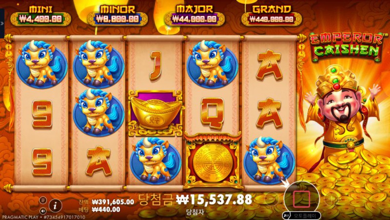 Emperor Caishen 은 동양 신화와 재물의 상징을 전면에 내세운 Pragmatic Play의 대표적인 중국풍 슬롯 게임이다. 화면을 가득 채운 금화, 붉은 색감, 그리고 부를 상징하는 캐릭터들은 첫 진입 순간부터 ‘재물 슬롯’이라는 정체성을 분명하게 전달한다. 이 게임은 복잡한 연출보다는 안정적인 구조와 친숙한 심볼 구성으로, 누구나 부담 없이 접근할 수 있도록 설계된 것이 특징이다. 특히 Emperor Caishen은 잭팟 시스템과 무료 스핀을 중심으로 플레이 흐름이 전개되며, 한 번의 보너스 진입이 게임 전체의 분위기를 바꿔 놓을 만큼 강한 기대감을 만들어낸다. 릴 회전 속도와 UI 구성도 깔끔해 모바일 환경에서도 답답함 없이 플레이가 가능하며, 장시간 플레이보다는 꾸준히 안정적인 흐름을 선호하는 유저에게 잘 어울린다. 화려함보다는 전통적인 슬롯의 완성도와 ‘재물 운’을 상징하는 테마 몰입도가 돋보이는 작품이다.