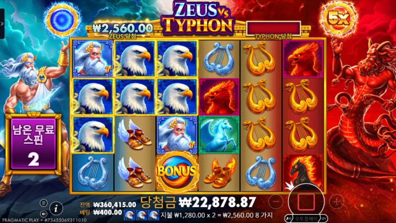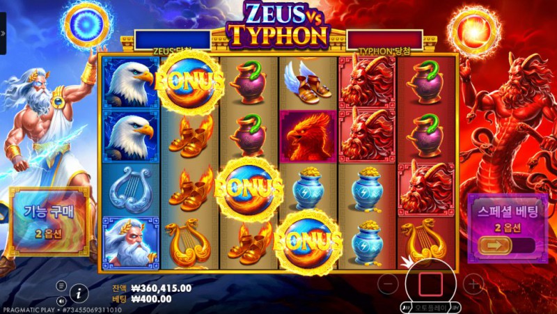 제우스 또는 티폰 테마 연출이 보너스 상황에 따라 변화