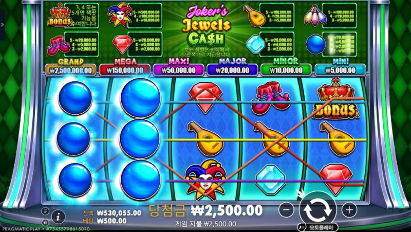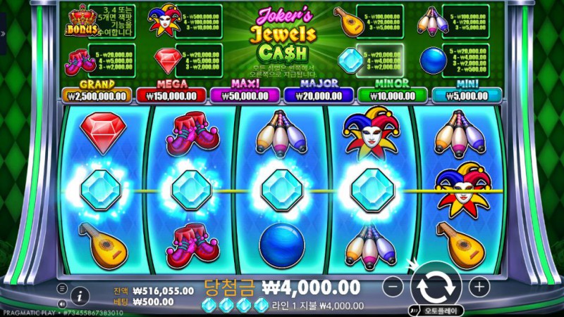 Pragmatic Play의 Jokers Jewel Cash 는 기존 Joker 시리즈의 클래식한 감성을 유지하면서도, 잭팟 시스템과 캐시 기능을 더해 한층 확장된 재미를 제공하는 슬롯이다. 녹색과 금색을 중심으로 한 화면 구성은 전통적인 카지노 분위기를 떠올리게 하며, 릴 위에 배치된 보석과 광대 심볼은 직관적이면서도 선명한 인상을 준다. 단순한 카드 테마 슬롯에서 한 단계 진화한 형태로, 기본 구조는 익숙하지만 보너스 요소는 보다 공격적인 성향을 띤다. 이 게임의 가장 큰 특징은 상단에 표시되는 GRAND, MEGA, MAXI, MAJOR, MINOR, MINI 잭팟 시스템이다. 기본 릴은 간결하지만, 보너스 진입 시 고정 심볼과 현금 배당이 더해지면서 긴장감이 크게 상승한다. 복잡한 스토리 연출 대신 빠른 템포와 명확한 목표를 제시하는 구조이기 때문에, 짧은 시간 안에 집중력 있는 플레이를 원하는 유저에게 잘 어울린다. 특히 클래식 슬롯을 좋아하면서도 잭팟 요소를 동시에 즐기고 싶은 플레이어라면 매력적으로 다가올 수 있다.