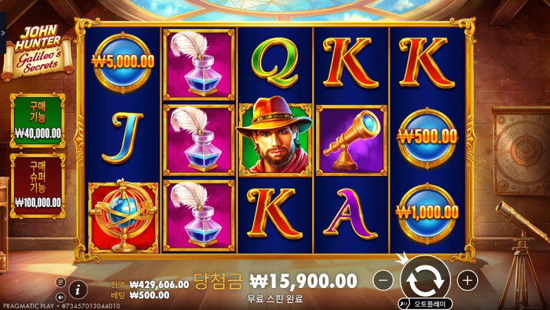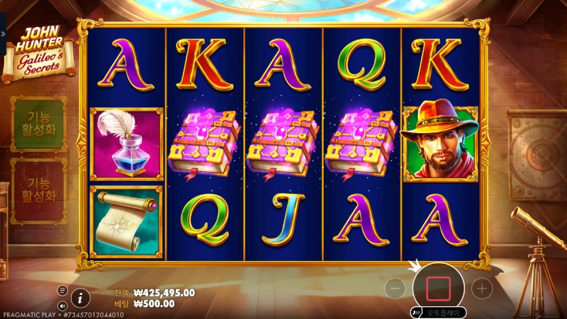 John Hunter and Galileo’s Secrets 는 프라그마틱 플레이가 자신 있게 내놓은 ‘존 헌터’ 사가의 정통 후속작입니다. 갈릴레오의 비밀이라는 흥미로운 소재를 채택하여 기존의 이집트나 아즈텍 문명과는 또 다른 지적인 모험의 재미를 줍니다. 게임의 핵심은 단연 ‘미스터리 심볼’의 활용입니다. 단순히 다른 심볼로 변하는 것에 그치지 않고, 릴 전체를 덮으며 머니 리스핀으로 연결되는 징검다리 역할을 수행하여 플레이어에게 지속적인 기대감을 부여합니다. 최대 5,000배의 당첨 잠재력은 하이 롤러들에게 충분한 매력 포인트가 될 것이며, 단계별로 진화하는 프리 스핀 모드는 게임의 깊이를 더해줍니다. 고전적인 슬롯의 향수와 현대적인 보너스 메커니즘을 동시에 즐기고 싶은 유저들에게 강력히 추천하는 작품입니다.