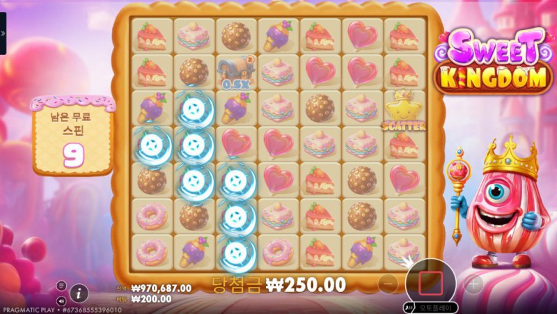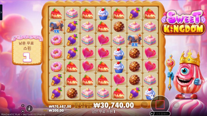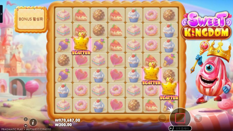 Pragmatic Play가 선보이는 Sweet Kingdom 은 동화 같은 캔디 왕국을 배경으로 한 슬롯으로, 다채로운 색감과 귀여운 그래픽이 돋보이는 작품입니다. 마치 사탕과 디저트로 가득한 판타지 세계에 들어온 듯한 느낌을 주며, 즐겁고 달콤한 분위기 속에서 높은 배당을 노릴 수 있는 것이 특징입니다. 특히 최대 10,000배의 당첨 배당은 큰 매력으로, 시각적인 즐거움과 함께 짜릿한 보상 가능성을 제공합니다.