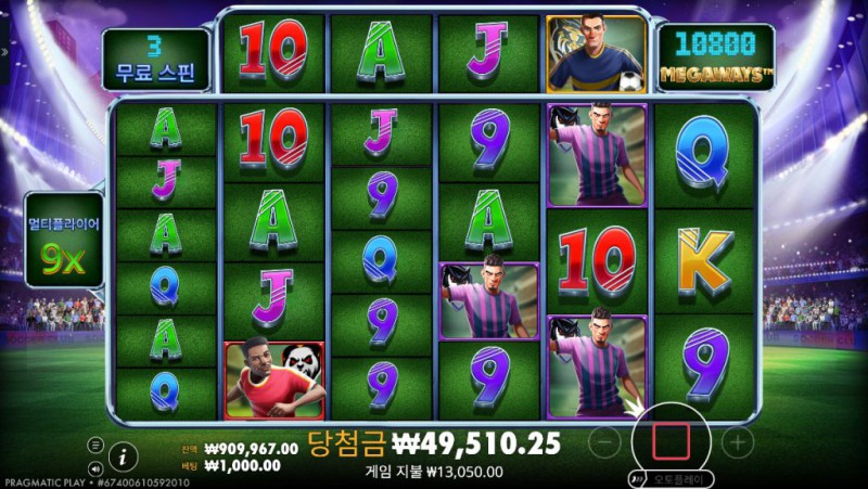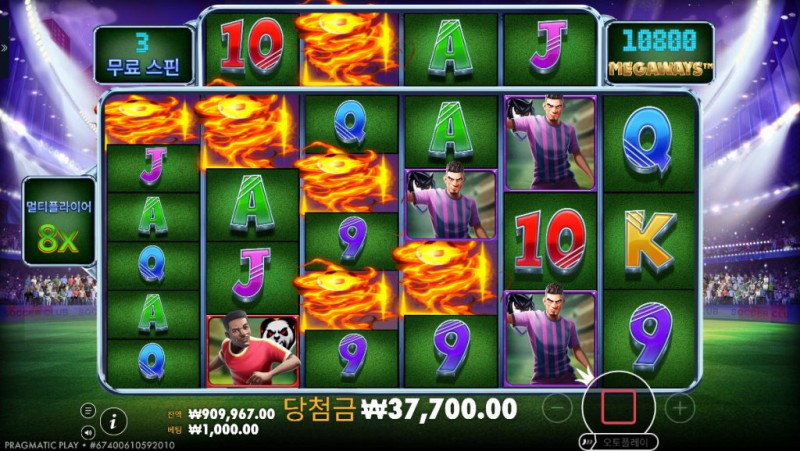 빅 WILD 기능 (Big Wild Feature): 경기장의 핵심 연출이라 할 수 있는 빅 와일드는 거대한 Wild 심볼이 등장하면서 릴 전체를 덮는 효과를 냅니다. 이를 통해 승리 조합이 한층 더 강화되며, Megaways 구조와 결합될 경우 놀라운 배당을 만들어낼 수 있습니다.
