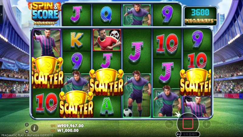 Pragmatic Play의 Spin & Score Megaways 는 축구 경기장의 열기를 그대로 옮겨온 듯한 스포츠 테마 슬롯으로, 수많은 플레이어들이 즐길 수 있는 다채로운 기능과 화려한 그래픽을 갖춘 작품입니다. 스크린에 펼쳐지는 축구장과 관중석의 묘사는 실제 경기장에서 응원하는 듯한 몰입감을 주며, 리일에 등장하는 축구 선수 심볼들은 스핀마다 마치 골을 향해 달려가는 듯한 긴장감을 불러일으킵니다. 특히 Megaways 시스템 특유의 최대 117,649가지 배팅 라인이 적용되어, 한 번의 스핀에서도 엄청난 수의 승리 조합이 발생할 수 있다는 점은 이 게임의 가장 큰 매력 중 하나입니다. 스포츠와 슬롯의 결합을 원하는 이들에게 SPIN & SCORE MEGAWAYS는 특별한 경험을 선사합니다.