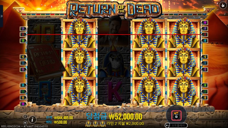 Return of the Dead 는 슬롯의 기본에 가장 충실하면서도 그 깊이는 결코 얕지 않은 작품입니다. 프라그마틱 플레이는 이미 시장에 수많은 이집트 테마 슬롯이 있음에도 불구하고, 더 높은 RTP와 깔끔한 인터페이스를 통해 이 게임만의 확고한 자리를 만들어냈습니다. 특히 확장 심볼이 5개의 릴을 모두 뒤덮는 순간 터져 나오는 5,000배의 당첨금은 왜 수많은 플레이어가 여전히 ‘북’ 스타일의 게임에 열광하는지를 여실히 보여줍니다. 화려한 부가 기능에 피로감을 느끼거나, 정통파 고변동성 슬롯에서 오는 짜릿한 한 방을 선호하는 플레이어라면 반드시 확인해 봐야 할 필독서와 같은 게임입니다. 전설적인 모험가와 함께 사막의 모래바람을 뚫고 파라오의 황금을 차지하는 주인공이 되어 보시기 바랍니다.