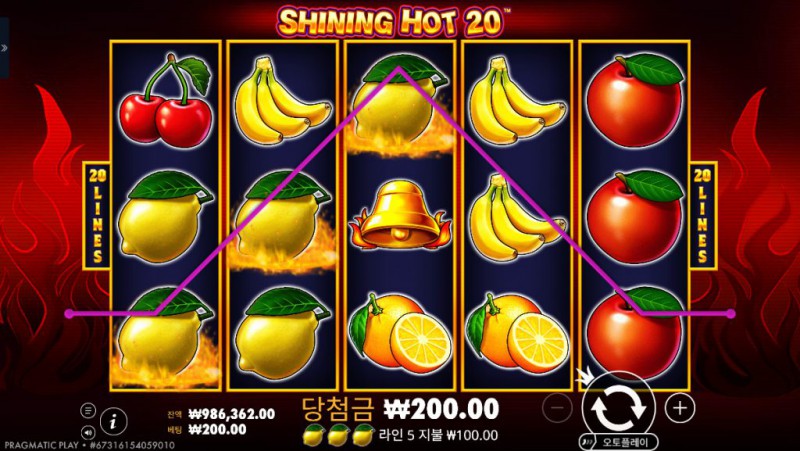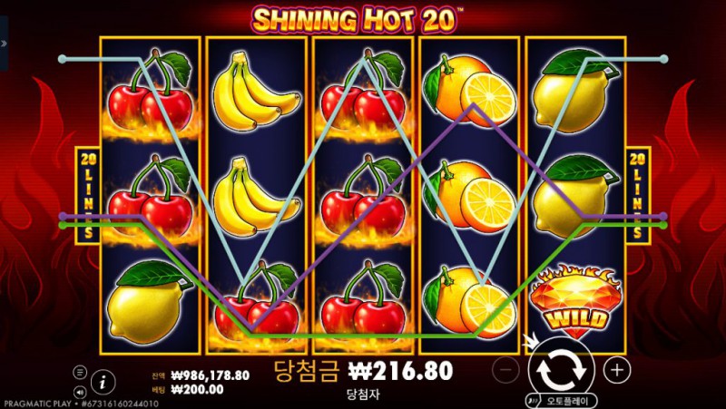 20개의 라인은 고정이므로, 플레이어는 단순히 베팅 금액만 조절하면 됩니다.